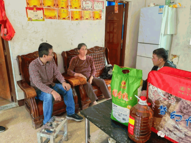 ▲清遠(yuǎn)市勘測(cè)院公司總經(jīng)理與門洞村村支部書記進(jìn)村慰問特殊情況致困家庭