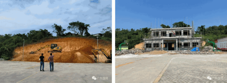 ▲門洞村黨群服務(wù)中心前期施工建設(shè)工作(左圖)、施工建設(shè)現(xiàn)狀(右圖)
