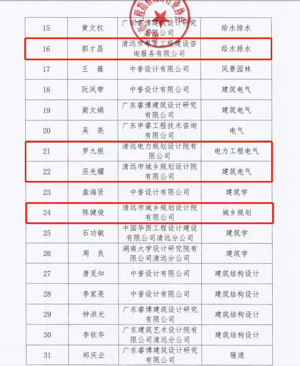 豐收時節(jié),碩果累累,喜訊頻傳。在清遠(yuǎn)市工程勘察設(shè)計行業(yè)協(xié)會開展的“第一屆清遠(yuǎn)市杰出工程勘察設(shè)計師”認(rèn)定工作中,德晟集團(tuán)下屬勘測院公司陳東武同志、粵星咨詢公司郭才昌同志、電力規(guī)劃設(shè)計院公司羅九根同志、城鄉(xiāng)規(guī)劃院公司巫先耀同志及陳健俊同志等5人喜獲榮耀。