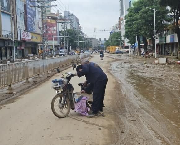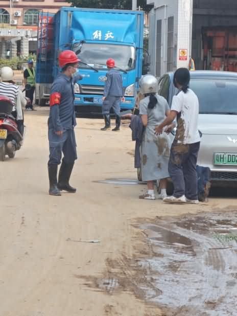 6月20日清晨,誠(chéng)創(chuàng)新能清新分公司朱明森趕赴任務(wù)途中扶起因洪水污泥滑倒的老伯,在確認(rèn)老伯身體狀況穩(wěn)定后繼續(xù)趕往搶修現(xiàn)場(chǎng);當(dāng)日下午,誠(chéng)創(chuàng)公司蘇子龍?jiān)谇巴亟放_(tái)區(qū)搶修路上遇見(jiàn)市民騎電動(dòng)車(chē)載女兒在泥濘中摔倒,迅速上前檢查幫助滿(mǎn)是泥濘的母女。污泥沾染衣袖,卻更顯責(zé)任與擔(dān)當(dāng)。