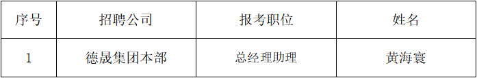 根據(jù)《清遠(yuǎn)市德晟投資集團(tuán)有限公司公開招聘總經(jīng)理助理的公告》,現(xiàn)對擬錄用人員進(jìn)行公示。